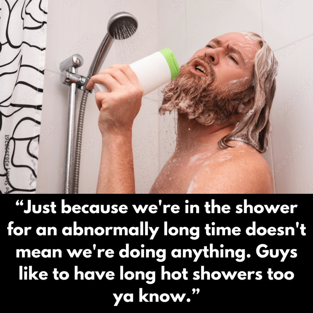 For some reason, it’s perfectly acceptable for women to have long showers. Still, guys don’t have nearly the same amount of social legitimacy to stand under the warm water and slowly lather, scrub, and rinse themselves without some suspicion being raised as to the true nature of their activities.